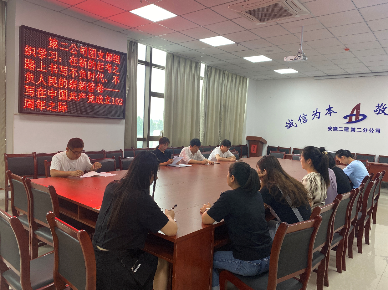 6月30日下午,第二公司團支部在會議室組織開展政治理論學習活動,公司機關團員青年參加會議。成美鉑悅府·攬境項目同步開展學習活動。