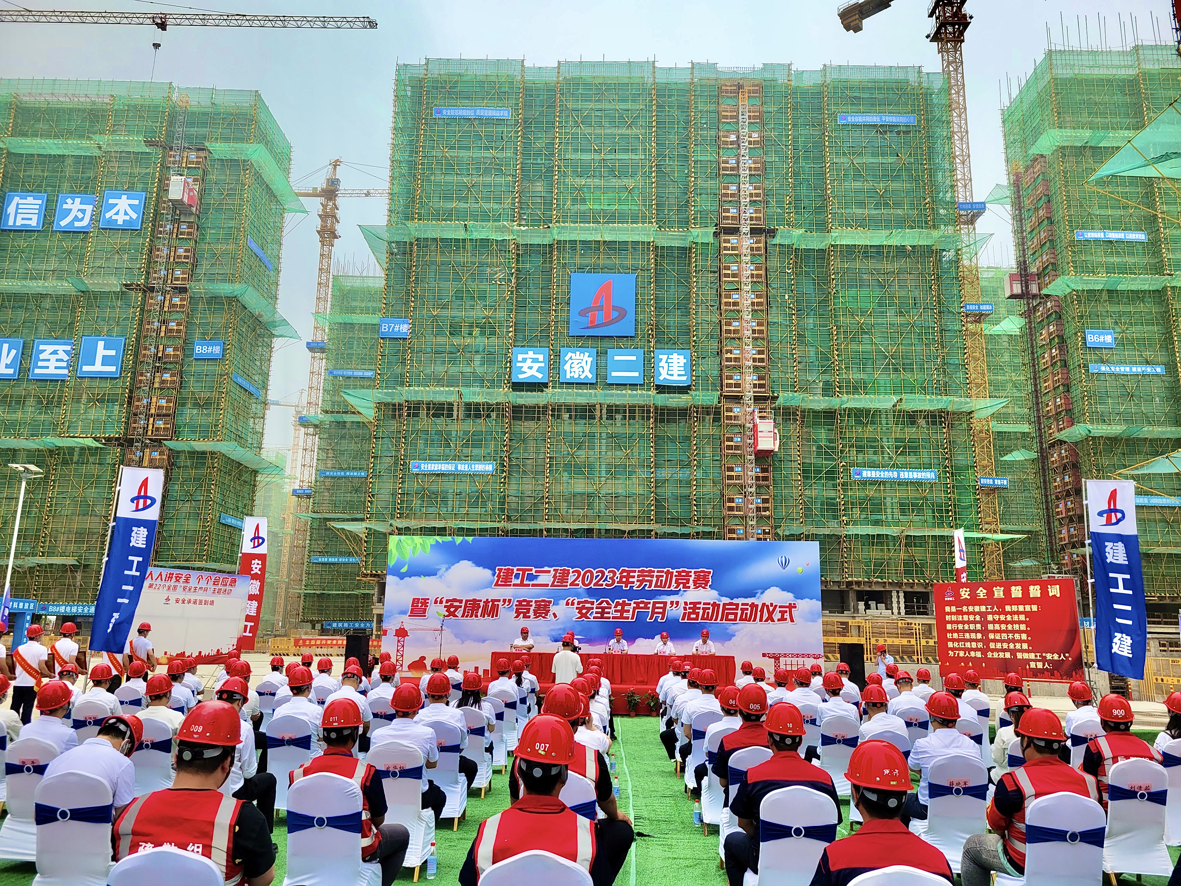 本次競賽活動得到公司領導高度重視,職能部門、各基層單位積極響應、密切配合,部署早,行動快。今年公司勞動競賽一大亮點就是做到了參賽項目的全覆蓋。公司針對收尾項目的特點專門制定了勞動競賽收尾項目考核評分標準,以競賽來推動促進收尾項目快速完工、竣工驗收、決算結算和工程款回收等工作。公司于5月30日上午在蕪湖中丞濱江時代廣場項目現場舉行了2023年勞動競賽啟動儀式,公司領導班子成員,勞動競賽委員會成員,所屬各單位主要領導,分管安全、生產及質量副經理等共百余人參加。下一步,建工二建將繼續強化督導,開展大討論,廣泛宣傳,對競賽持續跟蹤推進、檢查督促和效果評估,及時解決競賽過程中存在的困難和問題,確保勞動競賽扎實開展、富有成效。