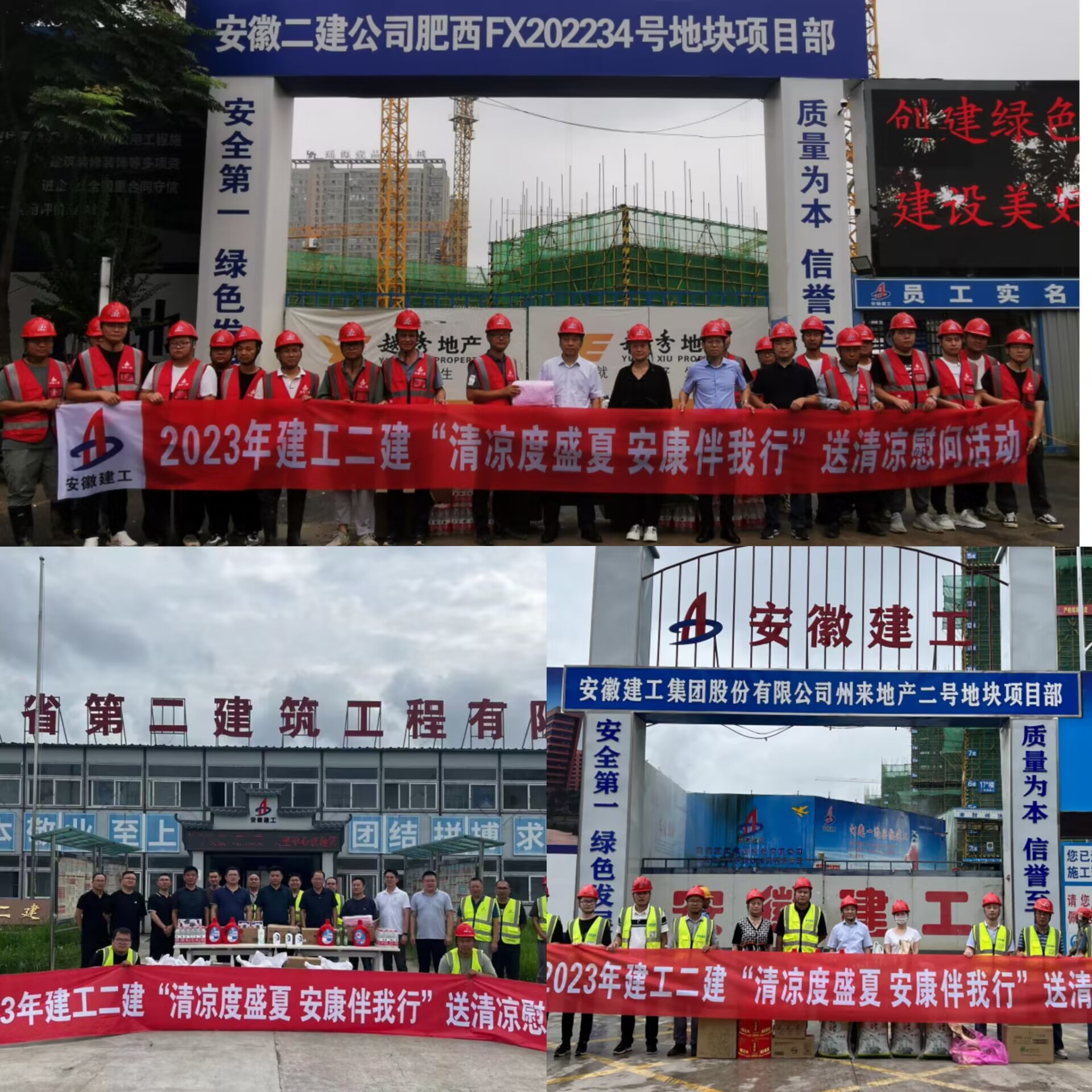 炎炎夏日,驕陽(yáng)似火,酷暑難耐。為保障職工身體健康,確保職工在各項(xiàng)生產(chǎn)工作中安全度夏,7月下旬,建工二建“清涼度盛夏 安康伴我行”送清涼慰問活動(dòng)順利開展。此次活動(dòng)由公司黨委統(tǒng)一部署安排,工會(huì)具體組織落實(shí),相關(guān)職能部門配合,公司領(lǐng)導(dǎo)帶隊(duì)赴一線項(xiàng)目,以點(diǎn)帶面共計(jì)對(duì)32個(gè)項(xiàng)目開展“送清涼”慰問。
