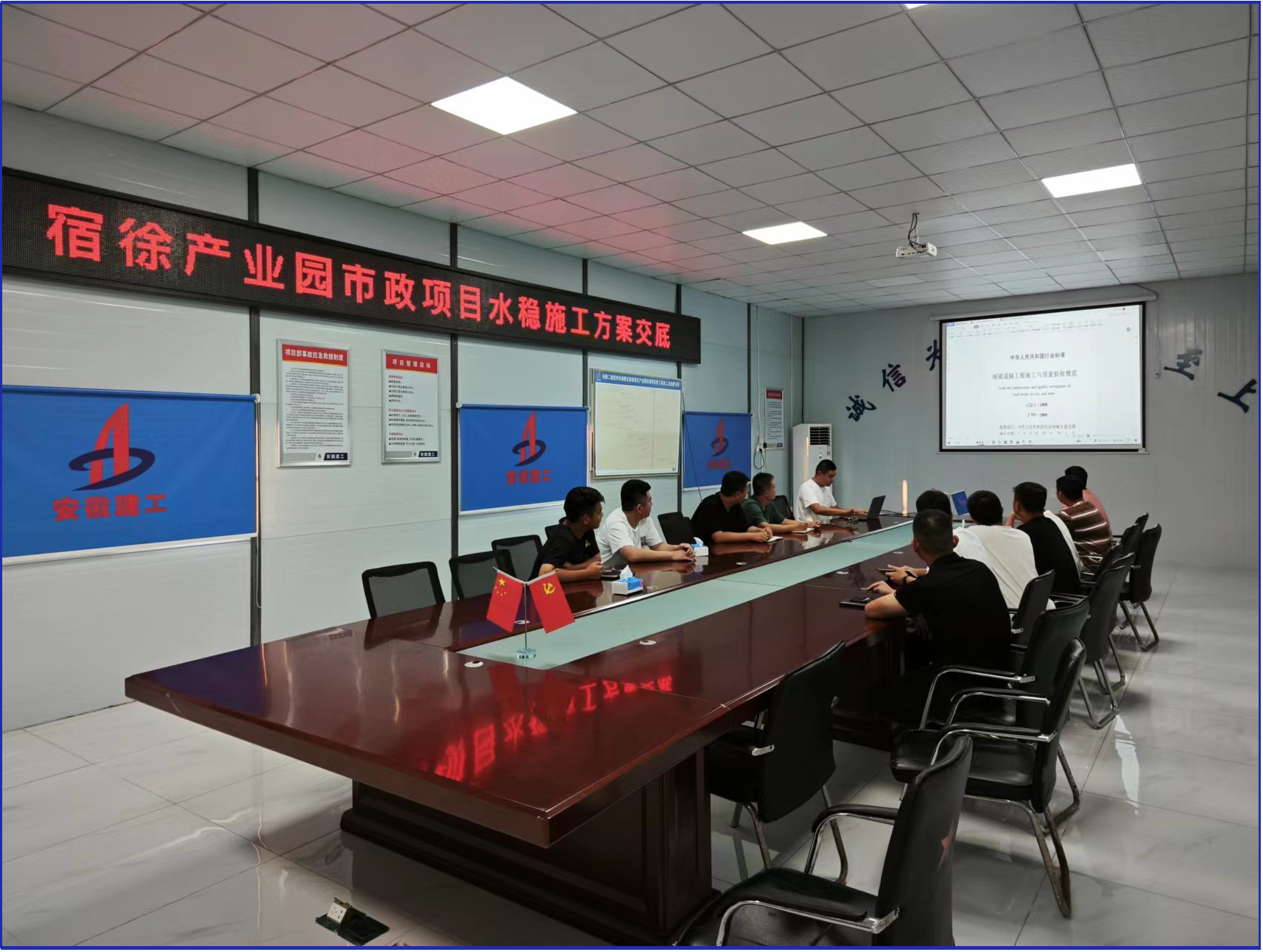 為全面做好道路施工及質量要求,在施工作業前,項目部技術負責人對全體人員進行了“水泥穩定碎石施工方案”的技術交底,確保現場全體參建人員清楚掌握水穩層鋪筑工藝流程、控制要點和標準施工注意事項,確保水穩層鋪設取得預期效果。