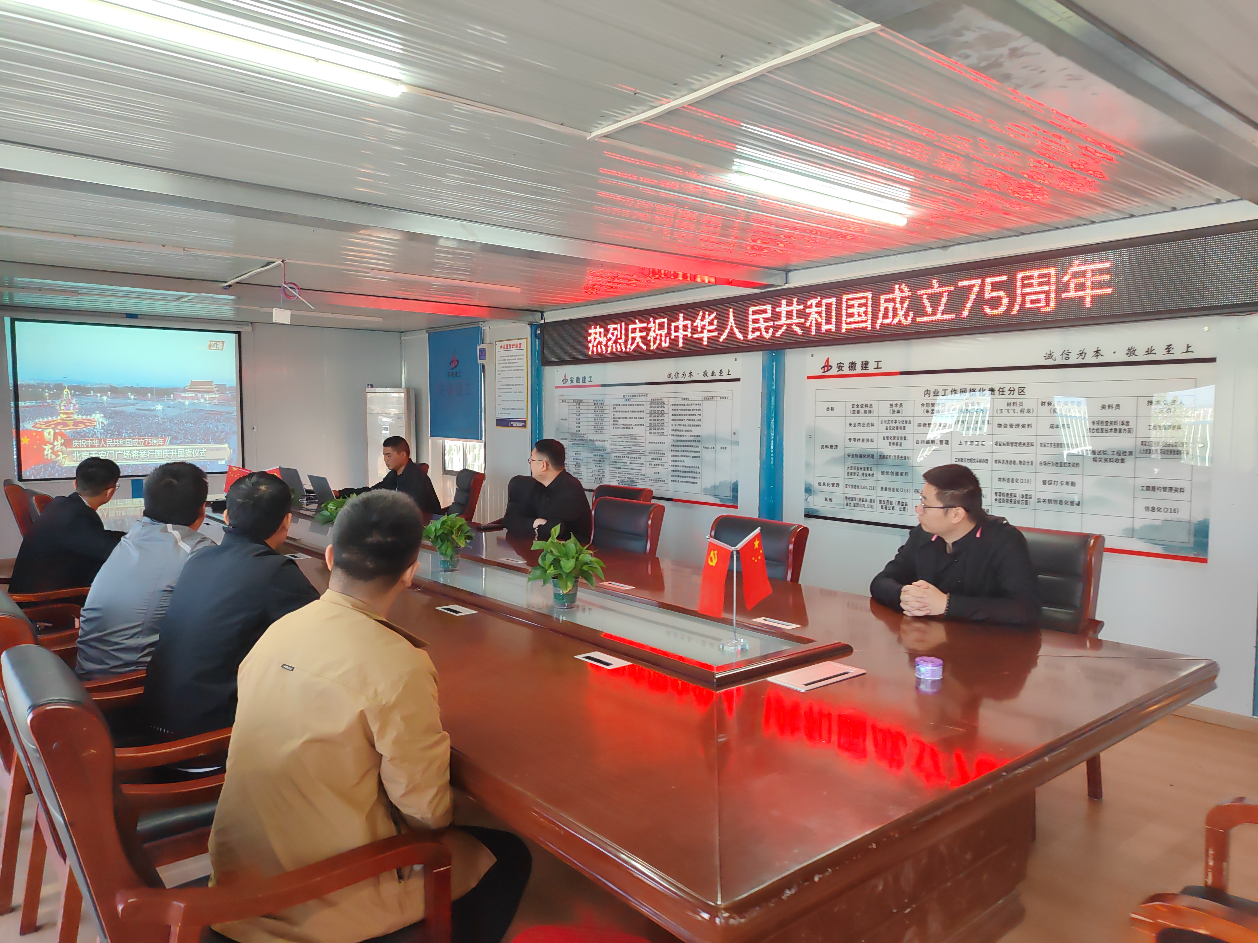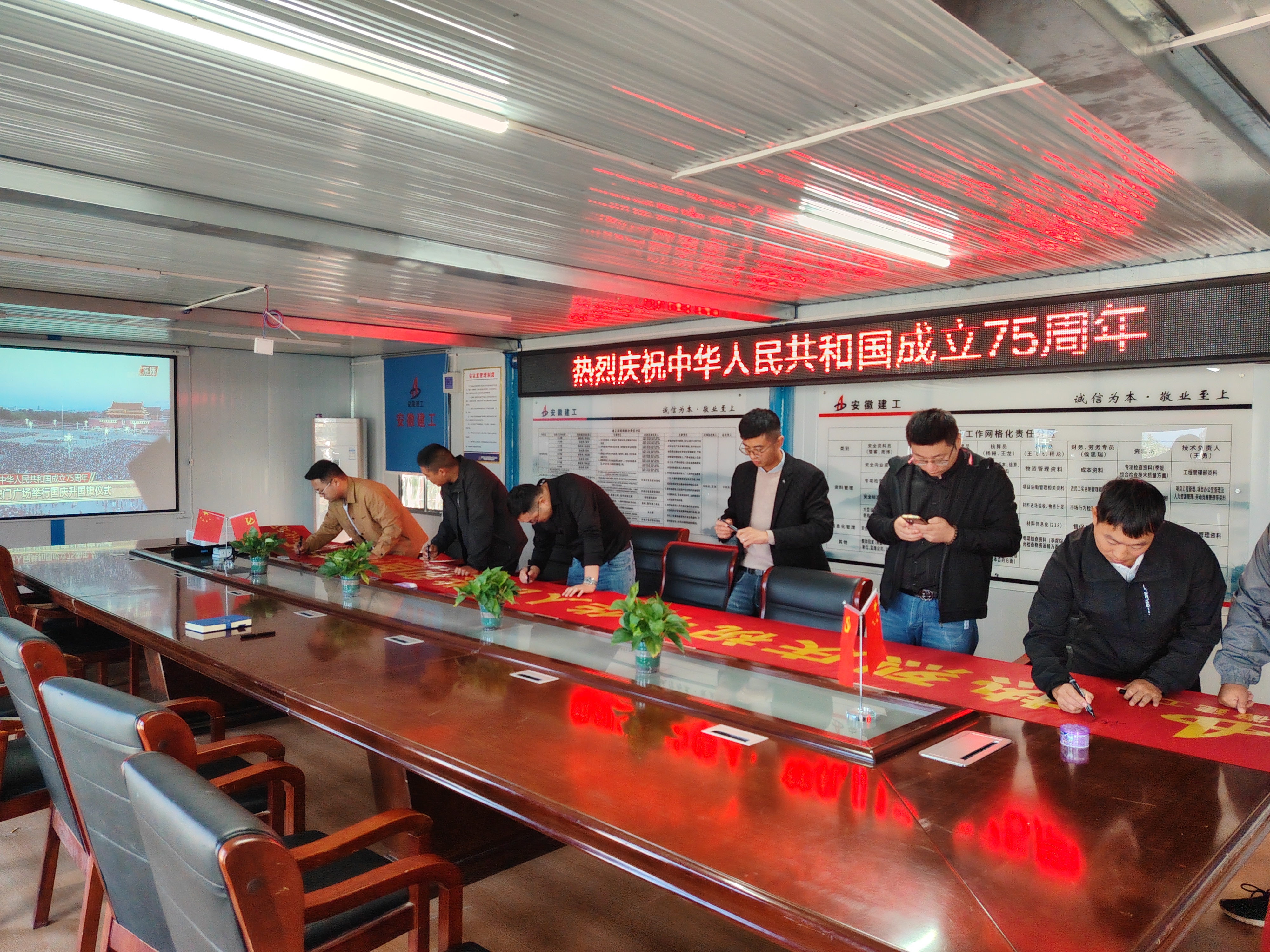 為慶祝中華人民共和國成立75周年,引導項目職工弘揚愛國主義精神,近日,宿徐園區城鎮一體化AB地塊工程項目部組織開展了“七十五載逢盛世,同心共筑譜華章”系列迎國慶活動,組織職工集中觀看天安門升國旗儀式,在慶祝橫幅上為祖國寫下祝福語,開展“我與國旗合個影”活動。