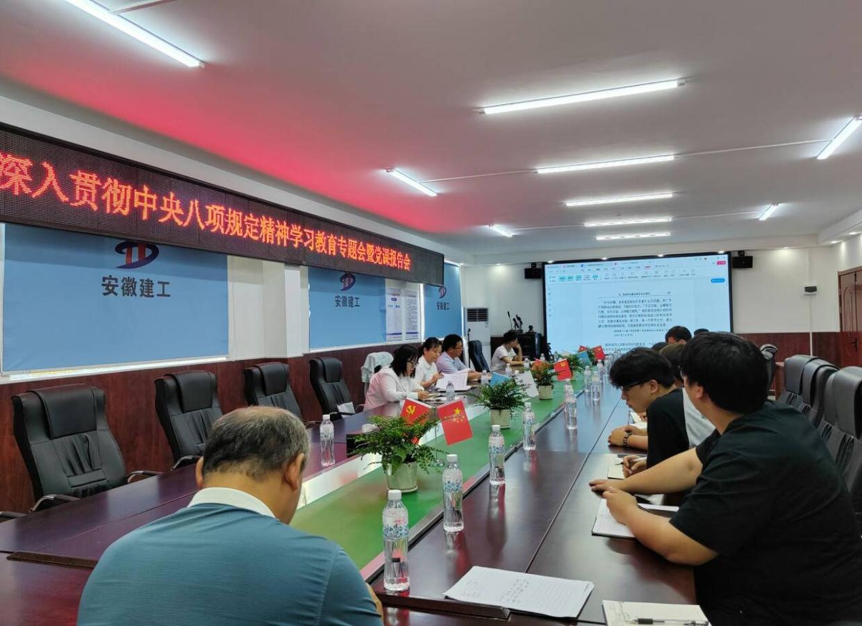 建工宿州投發公司機關黨支部書記徐晶晶一行赴項目部開展深入貫徹中央八項規定精神學習教育專題會暨黨課報告會