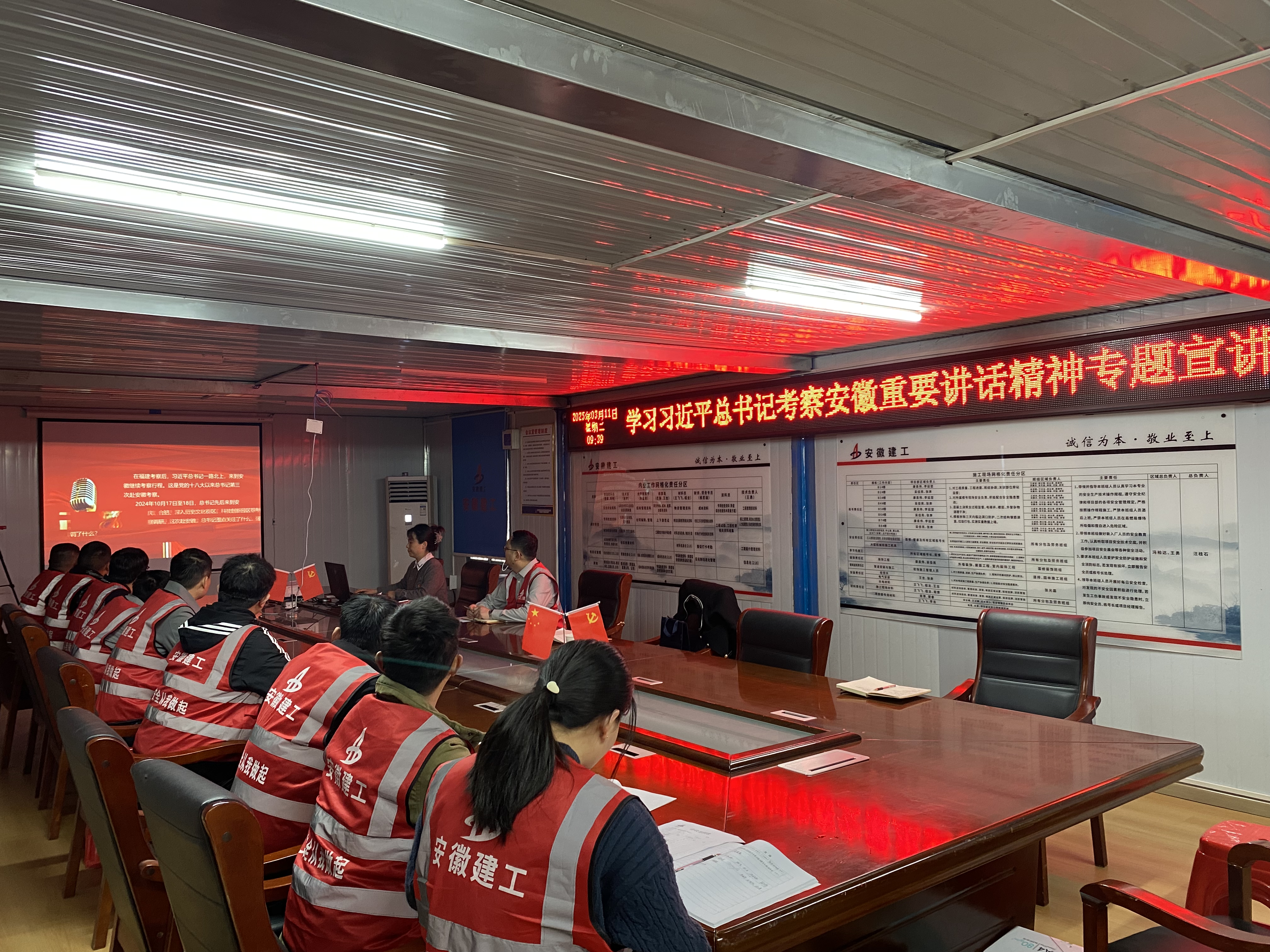 徐晶晶圍繞習近平總書記考察安徽重要講話精神,詳細解讀了觀古巷、看新城、謀未來等內容。會議強調要堅持黨建引領,充分發揮基層黨支部的戰斗堡壘作用和黨員的先鋒模范作用。隨后項目經理汪桂石傳達學習了安徽建工集團三屆二次職代會暨2025年工作會議精神及公司二屆一次職代會精神。