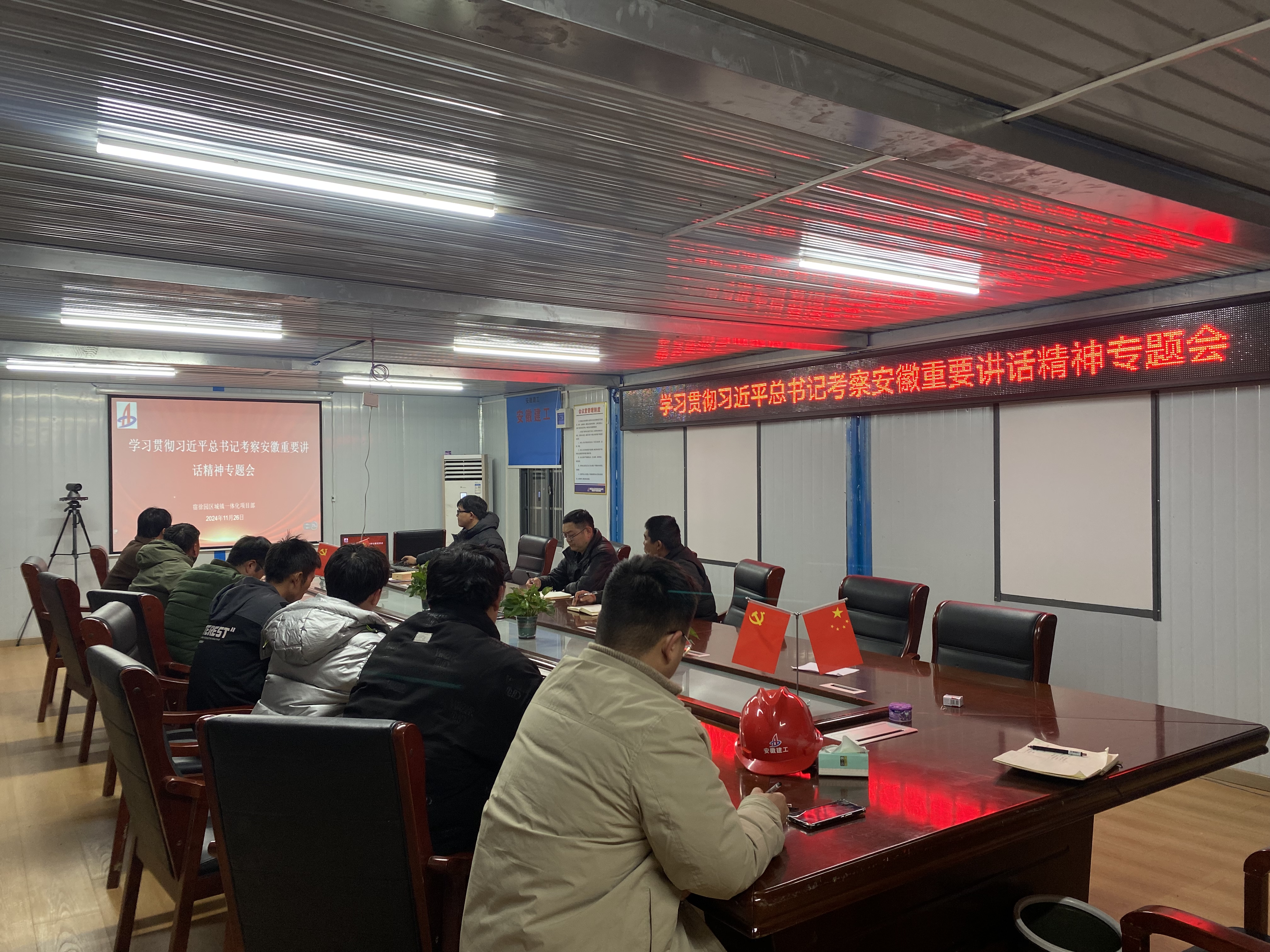 2024年11月26日,宿徐園區城鎮一體化項目部組織全體職工學習貫徹習近平總書記考察安徽重要講話精神,全面回顧了總書記考察期間對安徽經濟社會發展、科技創新、生態保護、民生改善等諸多方面提出的殷切期望和明確要求,深刻感受到總書記對安徽這片土地的深切關懷以及賦予的重大使命。