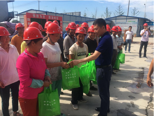 劉牧愚親自將飲料、礦泉水、藿香正氣水等防暑降溫用品送到施工現場的每一位員工和農民工手中。他每到一處都與員工們親切交流,仔細詢問項目部的工作環境和員工身體狀況,叮囑他們要注意身體、注意夏季安全生產,要勞逸結合,做好高溫防護。同時要求項目負責人要合理安排工人作息時間,嚴格控制加班作業,加強勞動安全保護,讓大家安全度夏。領導親切的關懷、真誠的話語,溫暖著每個員工的心。