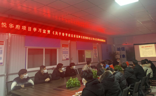 近日,銅陵吾悅?cè)A府項(xiàng)目組織學(xué)習(xí)【關(guān)于切實(shí)做好2021年“兩節(jié)”期間新冠肺炎疫情防控工作的通知】和【關(guān)于春節(jié)前后新冠肺炎疫情防控工作有關(guān)要求的通知】,根據(jù)文件精神安排部署春節(jié)前后新冠肺炎疫情防控工作,做到早安排早準(zhǔn)備,確保本項(xiàng)目在春節(jié)前后無(wú)疫情發(fā)生。