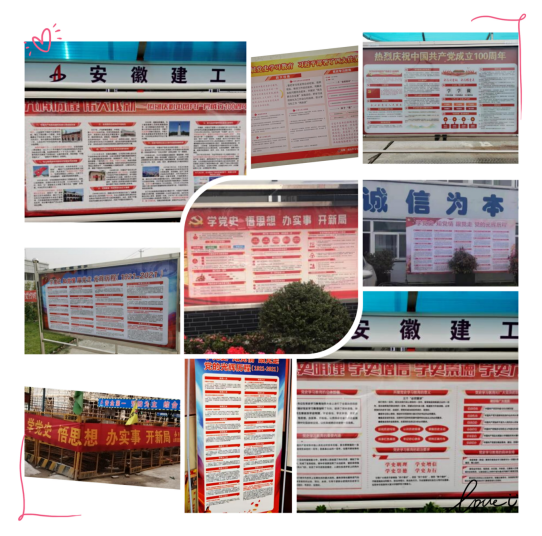 為慶祝中國共產(chǎn)黨建黨成立100周年,鞏固“不忘初心、牢記使命”主題教育成果,引導(dǎo)廣大職工緊緊圍繞學(xué)懂弄通做實(shí)黨的創(chuàng)新理論,做到學(xué)史明理、學(xué)史增信、學(xué)史崇德、學(xué)史力行,分公司黨支部號召各項(xiàng)目部開展“制展版 學(xué)黨史”活動(dòng)。