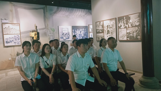 之后,來到了“大別山紅色電影展覽館”,學習百年輝煌黨史。從歷史年代、影片質量、片源資料等方面,館長親自向大家介紹了展館內重點展示的1930年代至1960年代生產的百部作品。接著,黨員干部們集體觀看了電影《黨的女兒》,該影片講述了第二次國內革命戰爭時期,江西根據地籠罩在白色恐怖中,共產黨員玉梅帶領人民群眾堅持斗爭,最后為了掩護游擊隊員而英勇就義的故事。觀影后,同志們紛紛表示我們應珍惜今天的幸福生活,自覺加強思想政治修養,認真履行好工作職責,把強烈的愛國熱情轉化為實際行動,無愧于我們的先輩和先烈,為祖國的蓬勃發展貢獻自己青春力量。