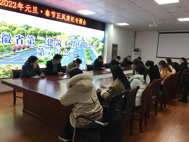2022年元旦、春節將至,為進一步強化正風肅紀,確保 “兩節”期間風清氣正,12月31日下午,第六分公司黨支部召開正風肅紀專題會議,認真學習貫徹中共中央辦公廳、國務院辦公廳和中央紀委印發《關于做好2022年元旦春節期間正風肅紀工作的通知》,對做好元旦春節期間有關工作提出明確要求,馳而不息糾“四風”、樹新風,積極營造歡樂祥和、文明節儉、風清氣正的節日氛圍。