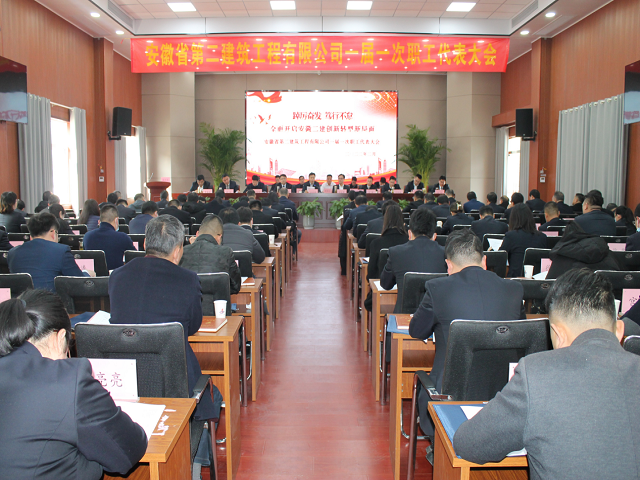 2月28日,安徽省第二建筑工程有限公司一屆一次職工代表大會在公司新會議室隆重召開。會議堅持以習近平新時代中國特色社會主義思想為指導,全面貫徹黨的十九大和十九屆歷次全會精神,貫徹安徽省第十一次黨代會精神和安徽建工控股二屆二次職代會暨2022年工作會議精神,回顧總結2021年工作,分析研判當前形勢,部署2022年目標任務,號召全體職工忠誠擁護“兩個確立”,堅決做到“兩個維護”,在省委、省國資委、建工控股黨委的堅強領導下,踔厲奮發、篤行不怠,埋頭苦干、勇毅前行,奮力譜寫安徽二建高質量發展新篇章,以實際行動慶祝集團建企70周年,以優異成績迎接黨的二十大勝利召開。