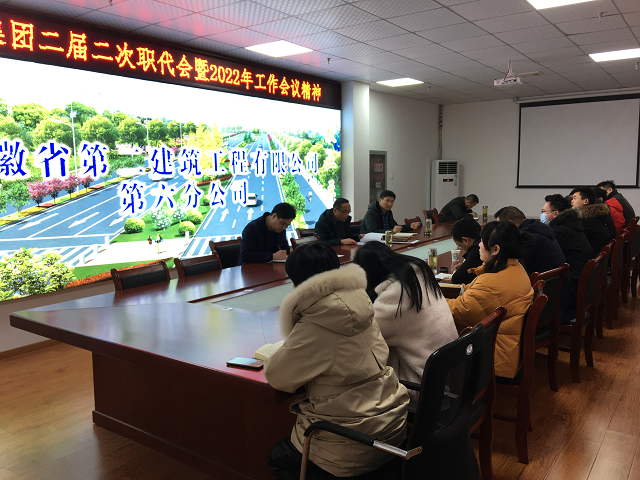 2月11日下午,安徽二建公司在三樓會議室召開了學習宣貫集團二屆二次職代會精神暨2022年度市場開發工作會議。會上,學習宣貫了集團二屆二次職代會暨2022年工作會議精神。會議要求,要把貫徹落實會議精神融入到公司經營工作中,各分公司要落實一把手責任,把主要精力投入到市場開發工作中;要積極優化業務構成,在公司統一協調指揮下加大公招、市政和投資類項目參與力度;要加強經營團隊建設,做好專業知識培訓,提升經營人員的能力;要嚴把成本關,做好成本策劃,杜絕經營虧損。會議強調,要堅定信心、不畏困難,全面落實集團職代會部署任務,努力提升項目質量,積極推動公司結構轉型,確保今年經營指標順利完成。